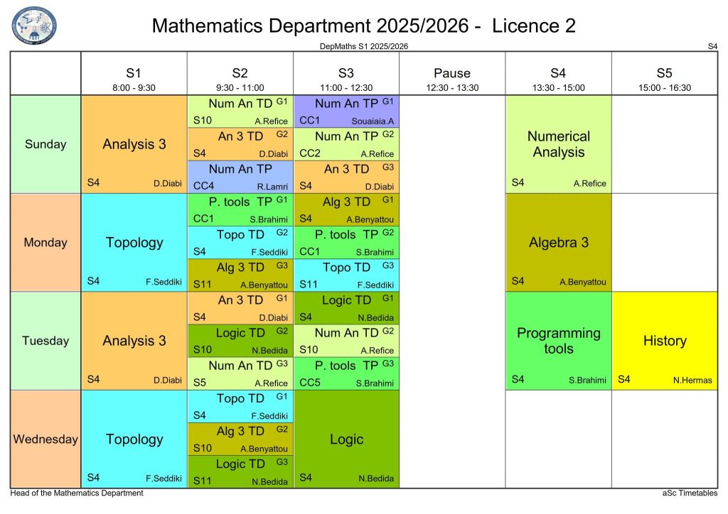 الرئيسية/قسم الرياضيات/التوقيت الأسبوعي لقسم الرياضيات (تحديث) التوقيت الأسبوعي لقسم الرياضيات (تحديث)