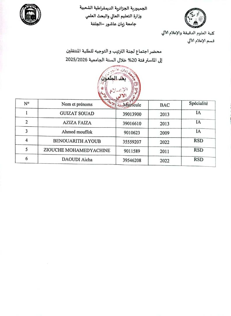 الرئيسية/قسم الإعلام الآلي/اعلان اعلان ليكن في علم الجميع أن آخر اجل التسجيل هو يوم الخميس 23 اكتوبر 2025.