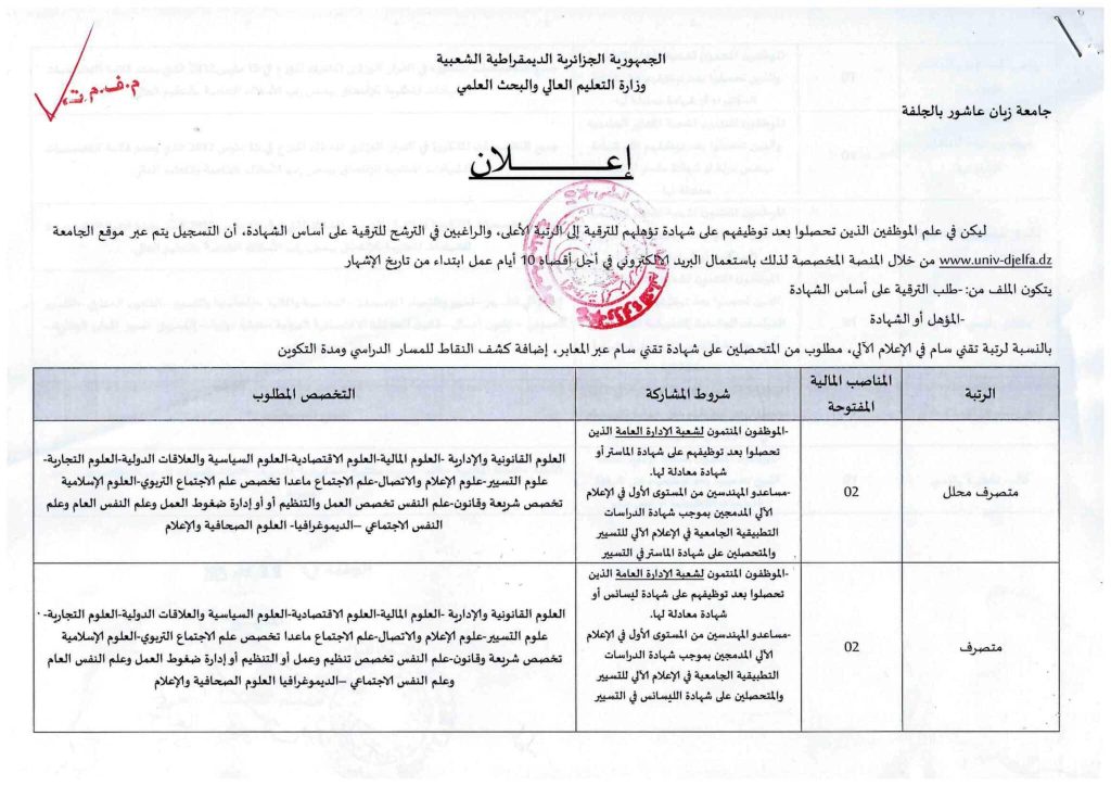 الرئيسية/الأمانة العامة/اعلان عن الترقية للموظفين على سبيل الاختبار اعلان عن الترقية للموظفين على سبيل الاختبار