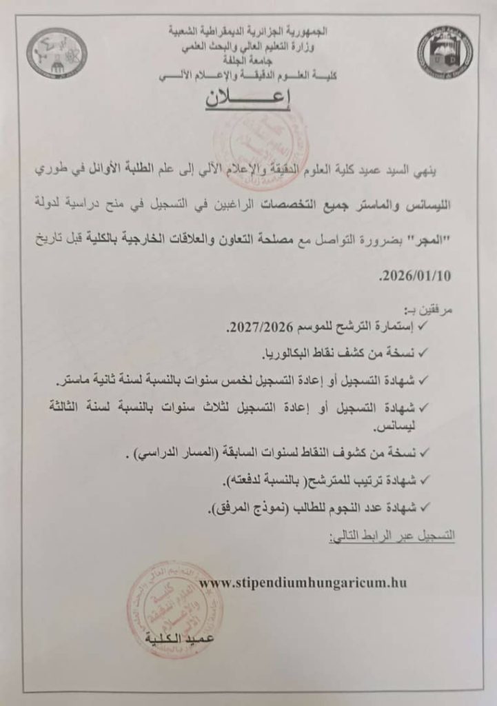 الرئيسية/ما بعد التدرج/اعلان للطلبة الأوائل في طوري الليسانس والماستر اعلان للطلبة الأوائل في طوري الليسانس والماستر