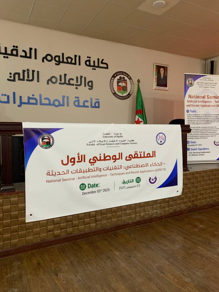 انطلقت صباح اليوم فعاليات الملتقى الوطني الأول حول الذكاء الاصطناعي، الذي احتضنته قاعة المحاضرات بكلية العلوم الدقيقة والإعلام الآلي بجامعة الجلفة، بمشاركة أساتذة باحثين من مختلف الجامعات الوطنية.
