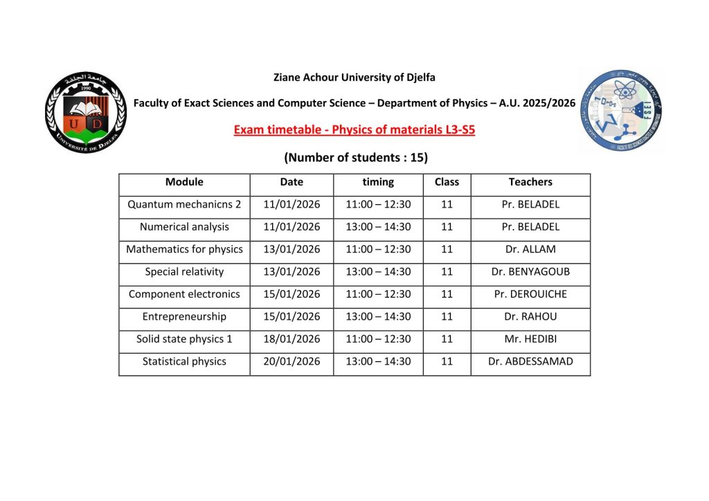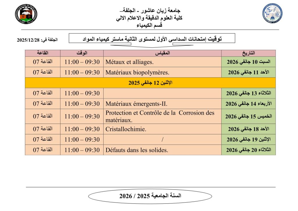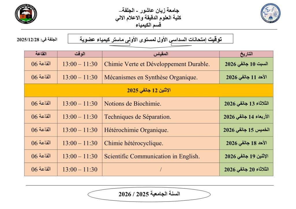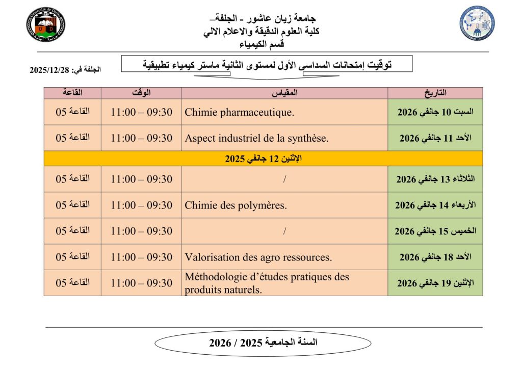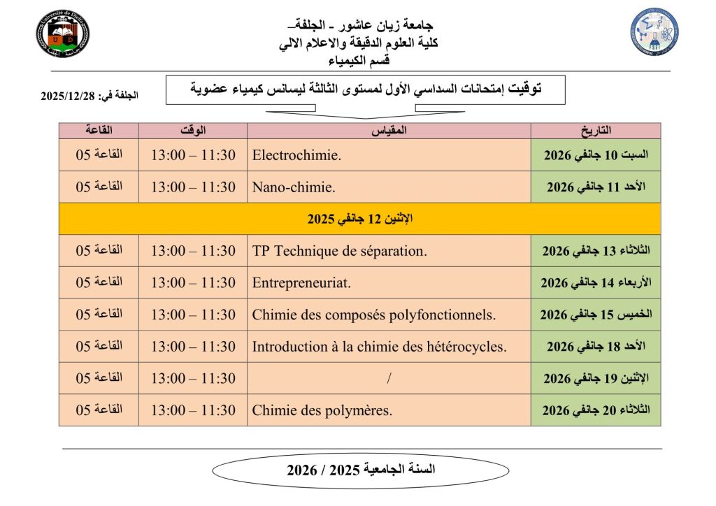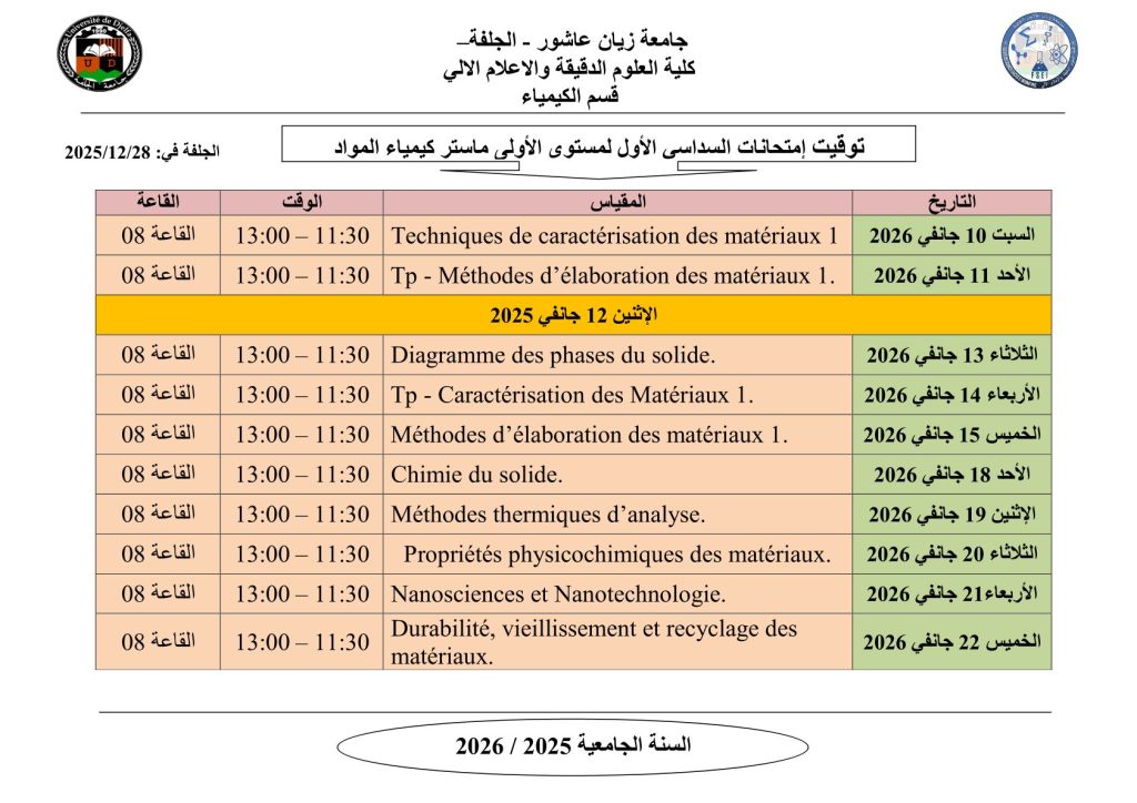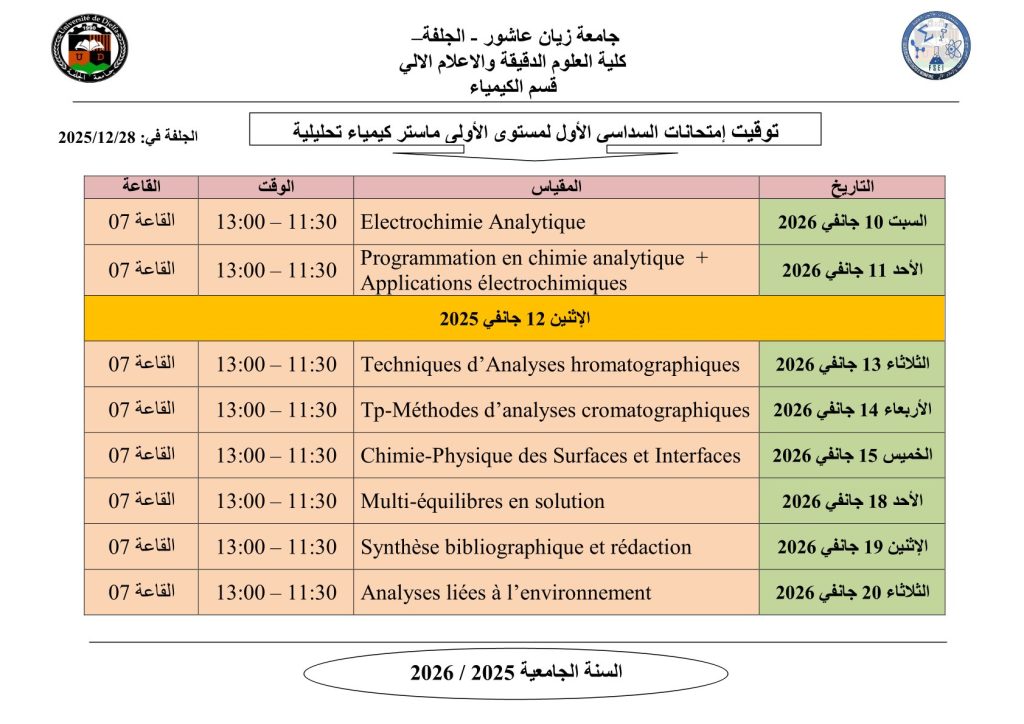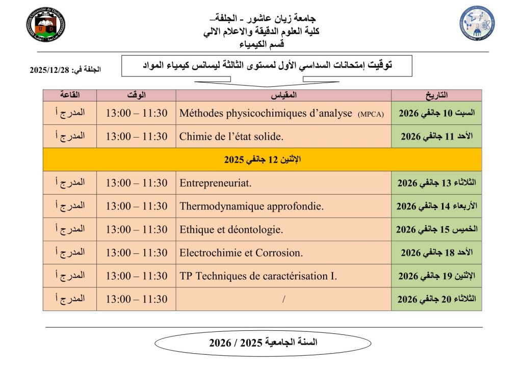 ليكن في علم الجميع أن امتحانات السداسي الأول ستُجرى في نفس التواريخ المعلن عنها سابقًا، دون أي تغيير.