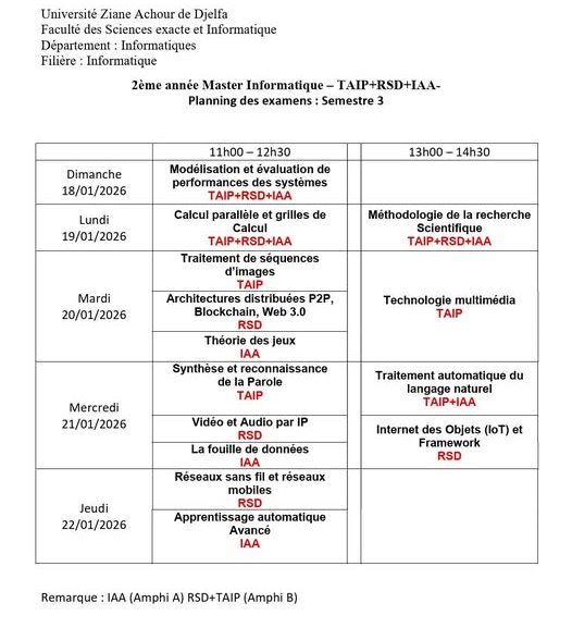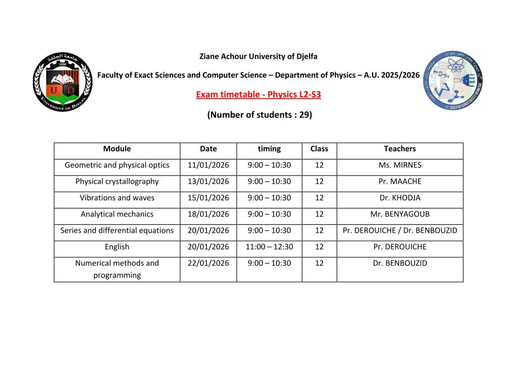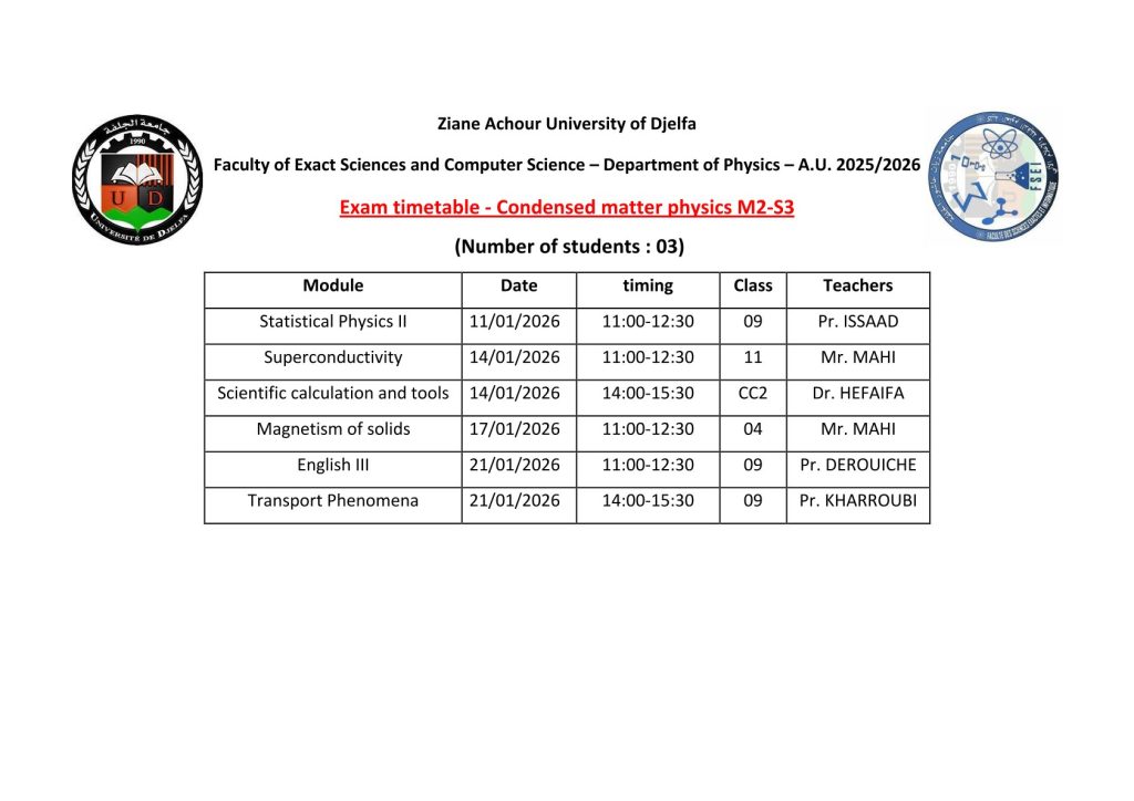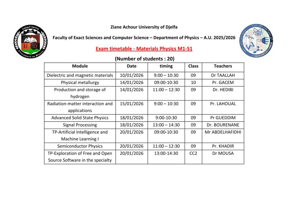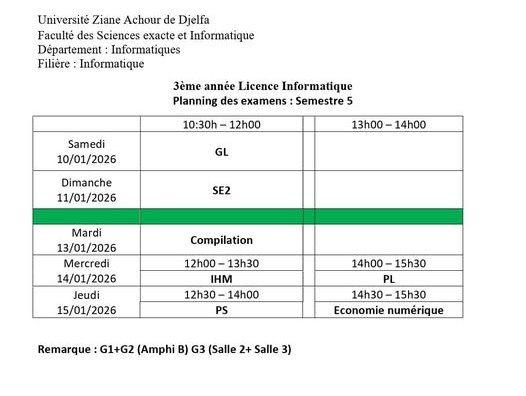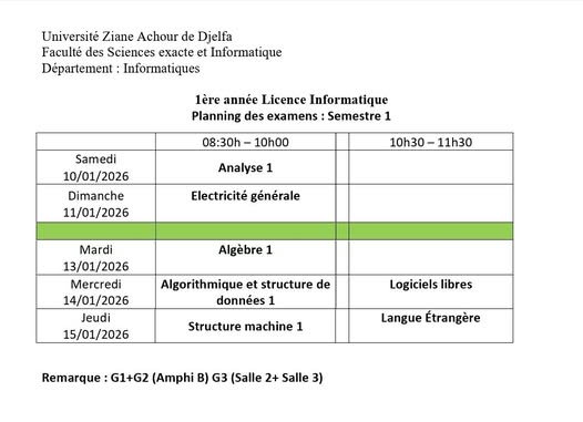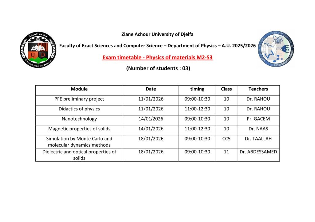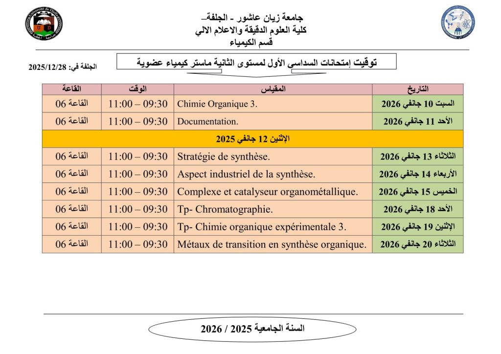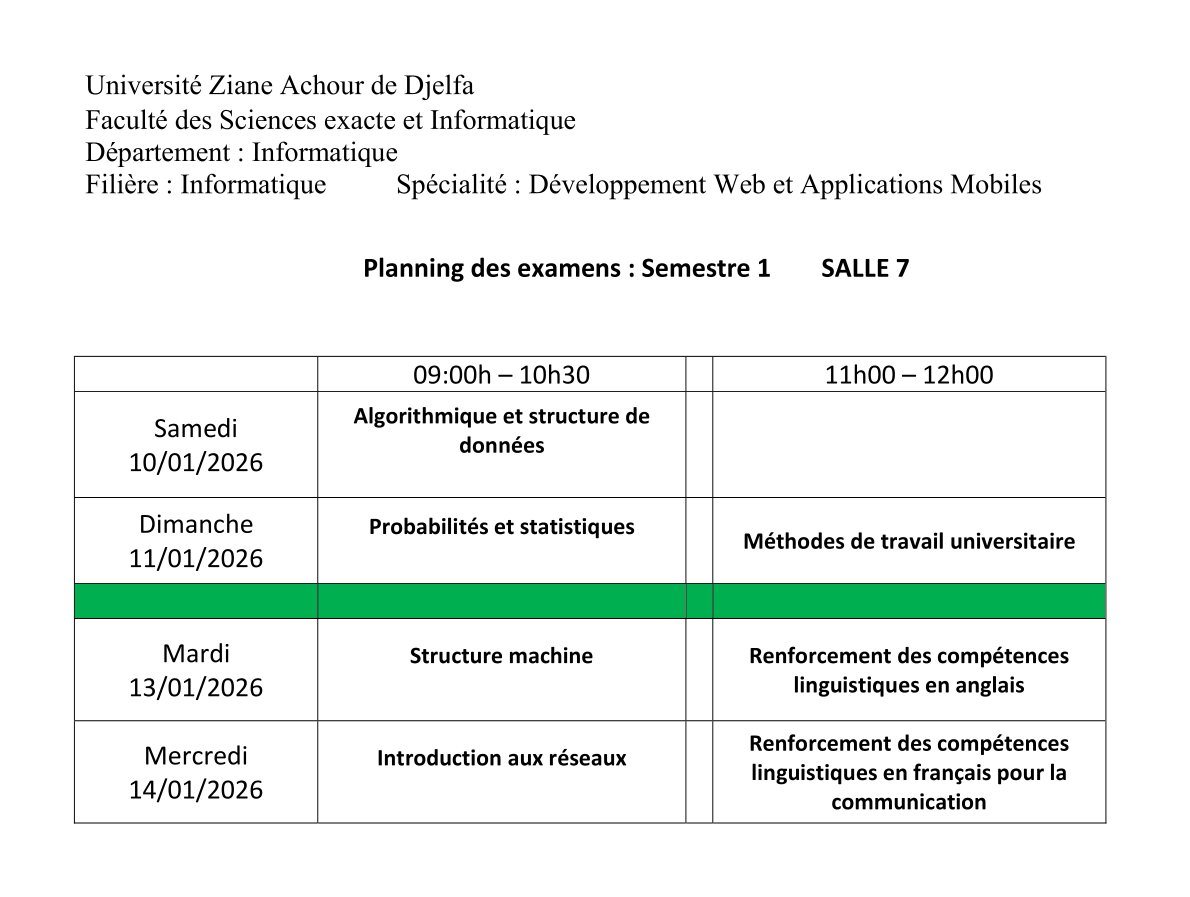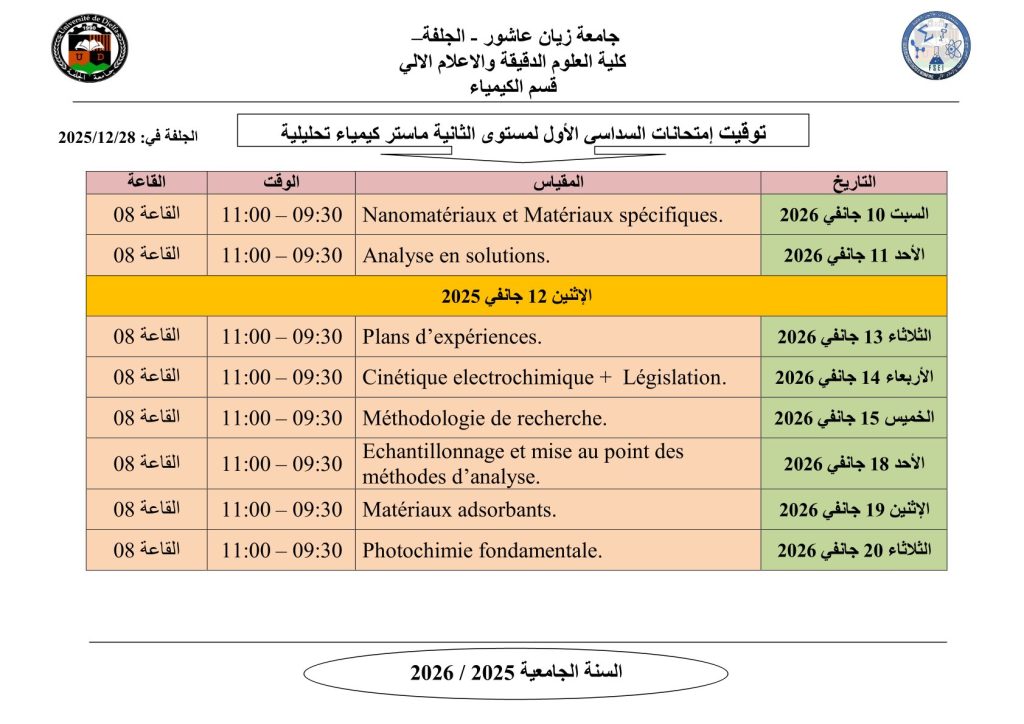 ليكن في علم الجميع أن امتحانات السداسي الأول ستُجرى في نفس التواريخ المعلن عنها سابقًا، دون أي تغيير.