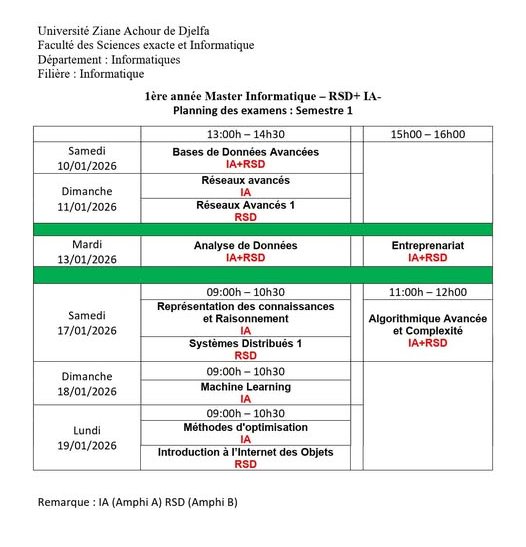 إمتحانات السداسي الأول لأقسام كلية العلوم الدقيقة والإعلام الآلي