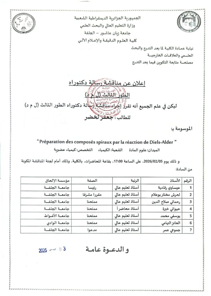 الرئيسية/ما بعد التدرج/إعلان عن مناقشة رسالة الدكتوراة للطالب “جعفر لخضر” إعلان عن مناقشة رسالة الدكتوراة للطالب “جعفر لخضر”