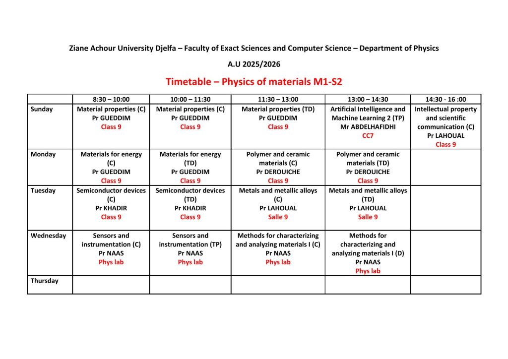 الرئيسية/قسم الفيزياء/التوقيت الأسبوعي للسداسي الثاني – قسم الفيزياء التوقيت الأسبوعي للسداسي الثاني – قسم الفيزياء