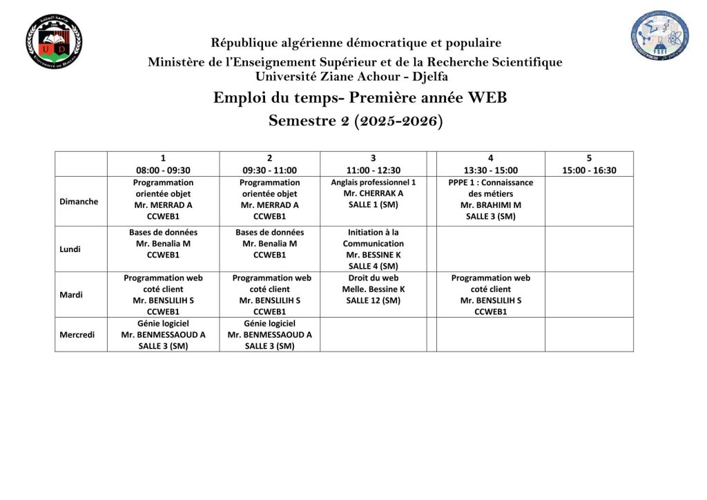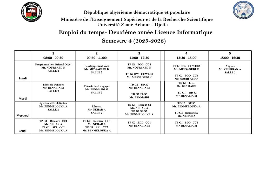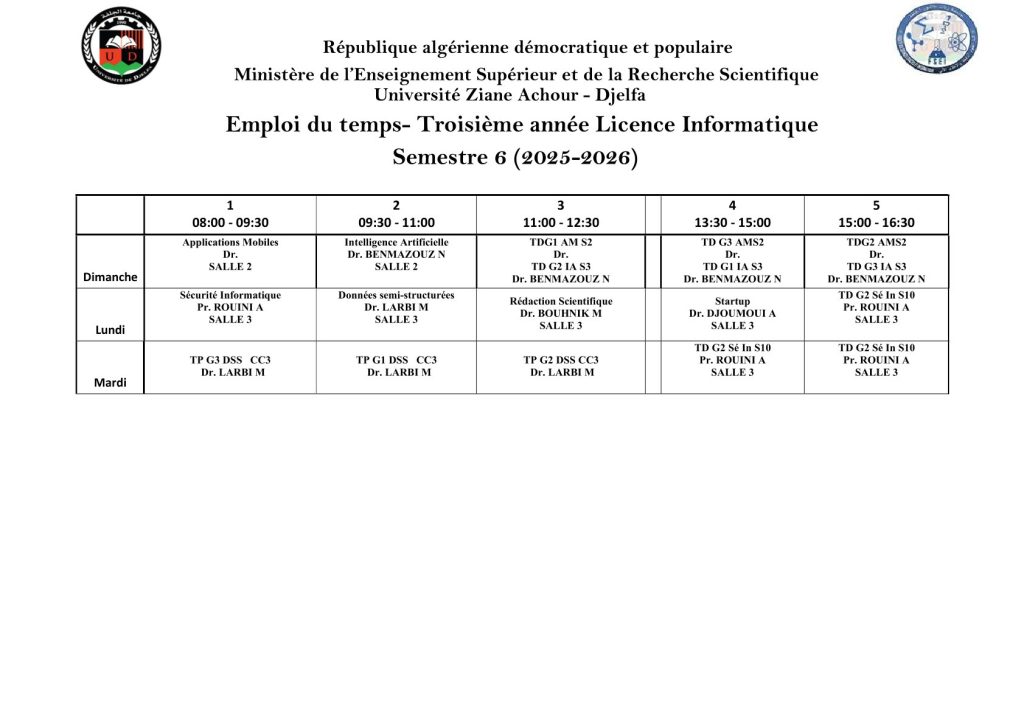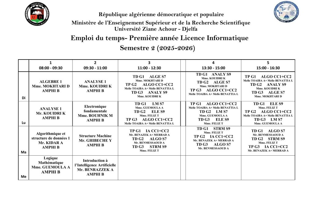 الرئيسية/قسم الإعلام الآلي/التوقيت الأسبوعي للسداسي الثاني – قسم الاعلام الآلي التوقيت الأسبوعي للسداسي الثاني – قسم الاعلام الآلي